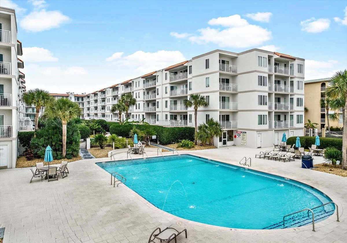 Resort-style amenities include an oceanside saltwater pool, two hot tubs, fitness center, tennis and pickleball courts, grilling area, and private beach access. Beach essentials are provided for carefree days in the sand.